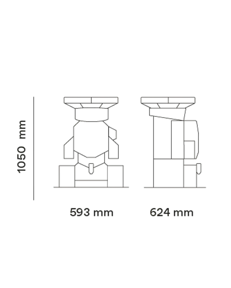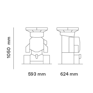 - Sobremesa: 593 x 665 x 1050 mm. Peso 98,1 kg